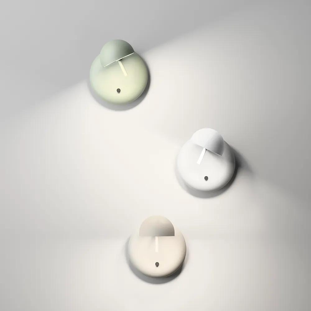 Vibia ofrece múltiples opciones de apliques de esta colección, en total siete. Todos ellos utilizan como fuente de luz el LED y usuario puede escoger entre cuatro acabados: negro, blanco, crema y verde.