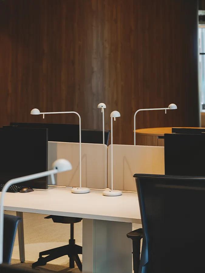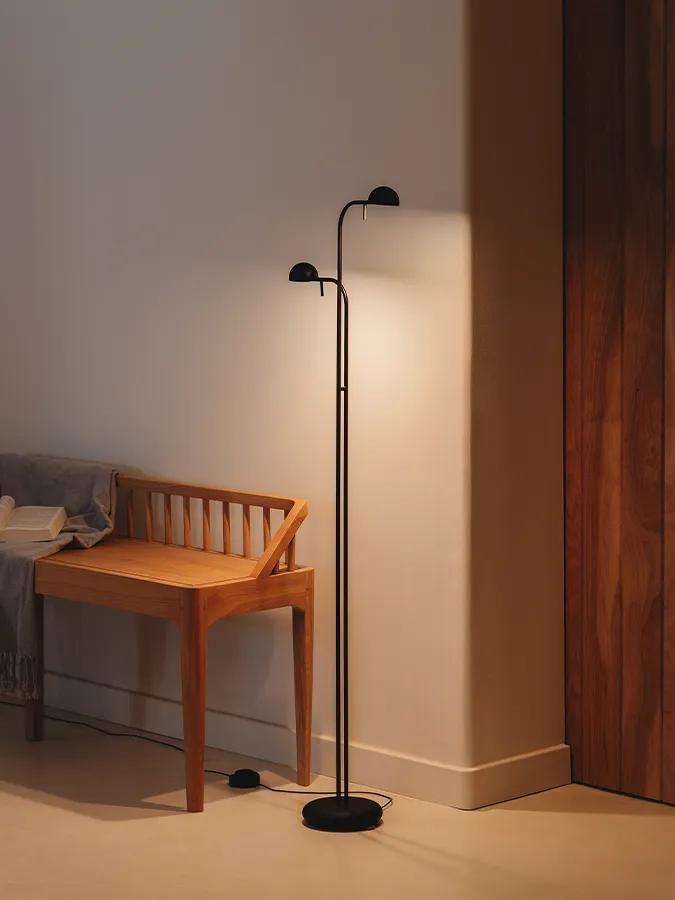 La collection Pin, en versions lampadaire et lampe de table, associe une silhouette élancée à un éclairage ponctuel et précis.