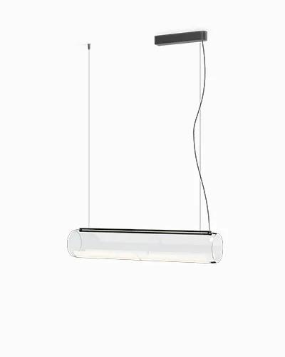 La collezione di lampade da soffitto Guise si distingue per la sua capacità di emettere luce direttamente dal vetro, mantenendo nascosta la fonte luminosa.