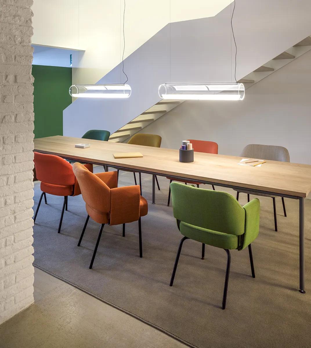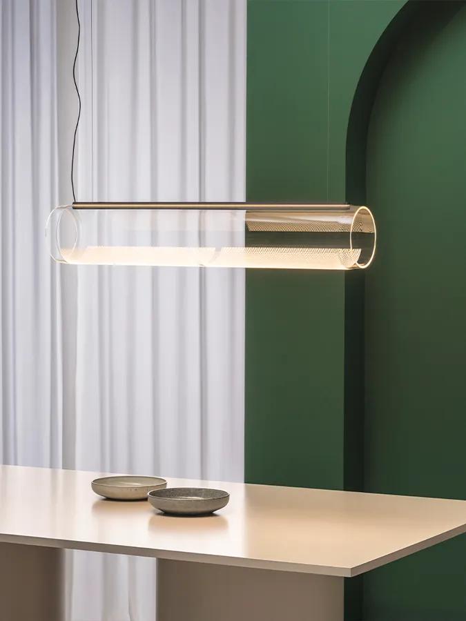 Progettata per distinguersi nell'architettura senza imporsi, Guise è la soluzione ideale per zone di passaggio, tavoli o spazi a doppia altezza.