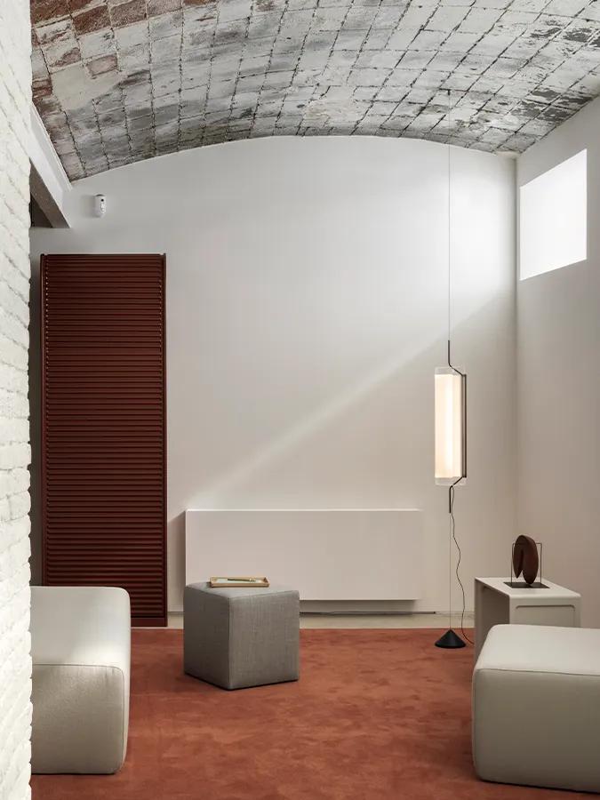 Le versioni a sospensione, disponibili in composizioni verticali, orizzontali e circolari, si distinguono per la fonte luminosa nascosta e una presenza quasi immateriale. Sospese nello spazio, proiettano una luce precisa e avvolgente che ridefinisce la percezione del volume. Il loro design sobrio ed espressivo le rende elementi versatili per l’architettura contemporanea.