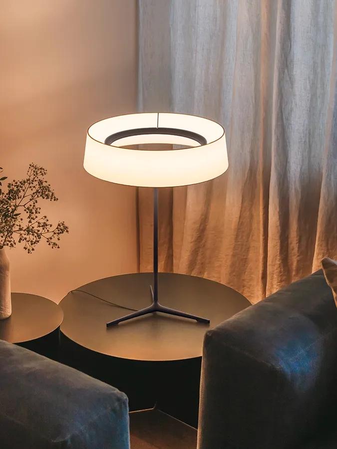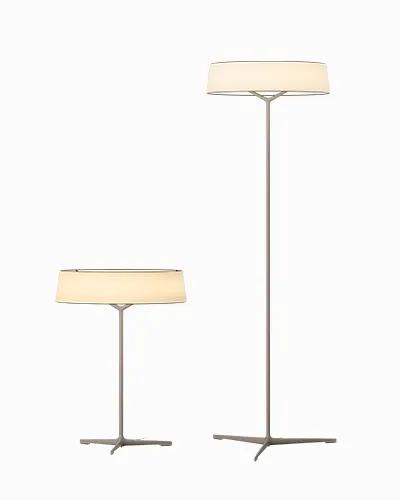 In the Dama floor lamp and table lamp, the cylindrical shade rests neatly on top of a slender aluminium stem which branches out into three legs available in two stylish finishes.