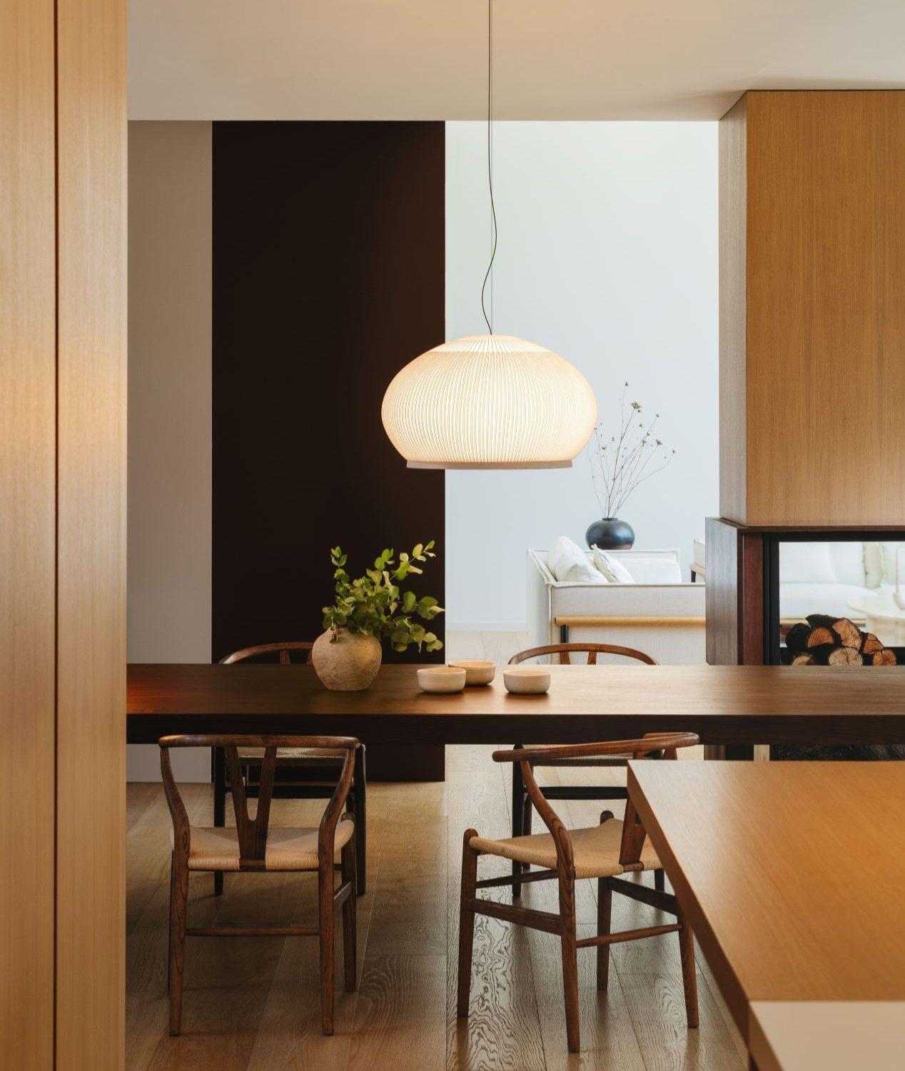 The bulk of each volume is covered in stretchy lycra, knitted into ribs using the plating technique. The darker ribs are opaque and tangible, while the space between the ribs is thinly knitted to transmit a diffused, 360-degree glow. Easy installation and dimming capabilities make the Knit pendant lamp the perfect solution for professionals looking for quality indoor lighting with an abundance of charisma.