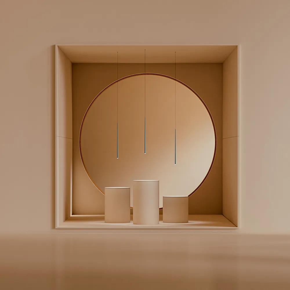 Slim’s finishes celebrate the beauty of the essential. The same slender silhouette transforms depending on the tone that dresses it: from deep black to earthy shades, warm oxides and mineral greens. Each colour integrates into the architecture as a natural extension of the space, offering character without excess. The collection allows each piece to be personalised using Vibia’s colour palette, enabling harmonious compositions or expressive contrasts — always under a single concept: lightness as an architectural gesture.