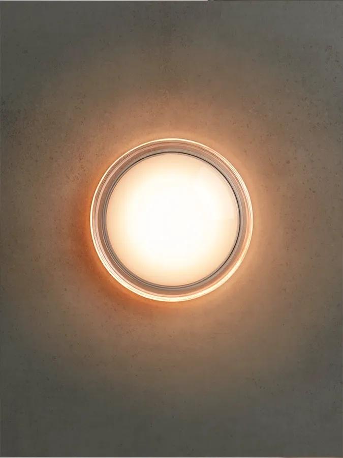 The Dots Glass wall lamp stands out for its sophisticated design, with layers of transparent optical glass surrounding an integrated LED source.