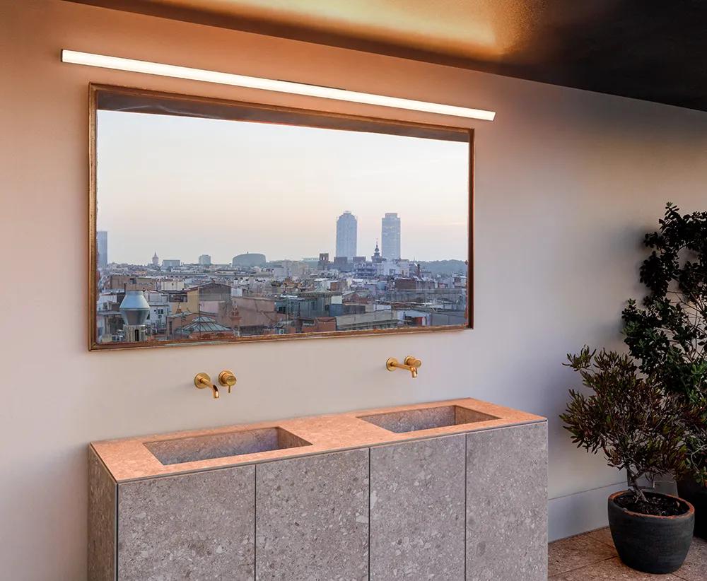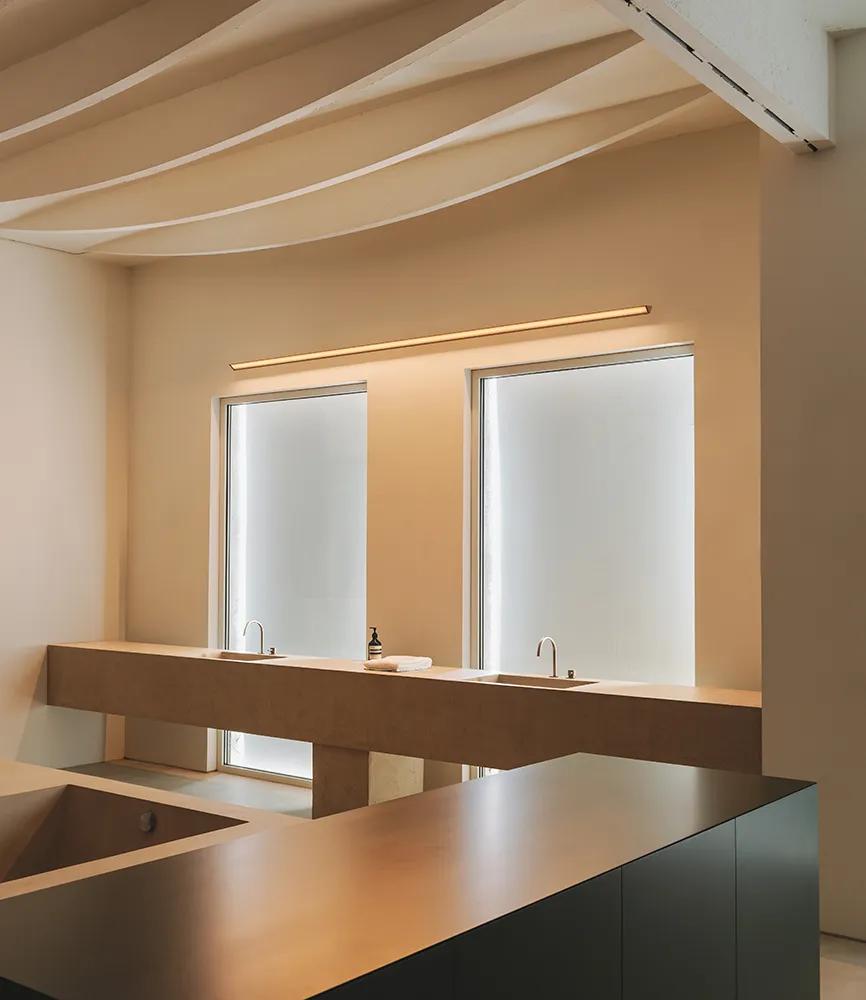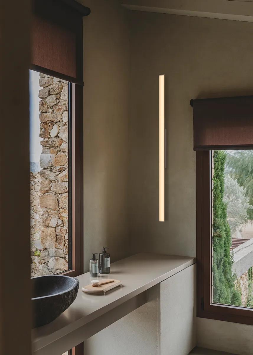 Suitable as a vanity light, Spa emits diffuse ambient lighting thanks to its angled placement, softly directing the beam as needed. Its precise and discreet linearity prevents glare and bathes the face in a homogeneous, soothing glow—ideal for spaces where visual comfort is essential. It integrates technical functionality and elegant presence with complete naturalness.