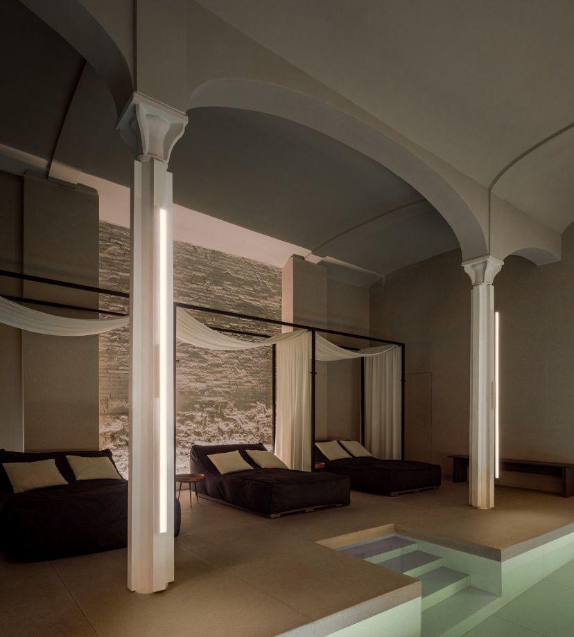 The vertical version of Spa with a central canopy introduces a serene, perfectly balanced presence on the wall. Its symmetrical layout enhances the space’s verticality and creates a clear architectural gesture—ideal for settings where proportion and visual order are paramount. Light flows gently from both ends, generating a warm, enveloping atmosphere that accompanies without intruding.